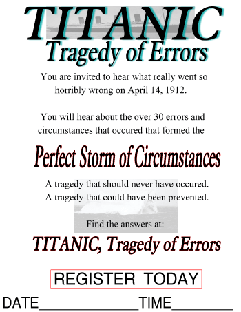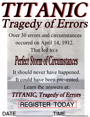 I loved learning about the reasons for the Titanic sinking and the Mysteries were awesome Thank you so very much for a great show. ~ Judy Sperner